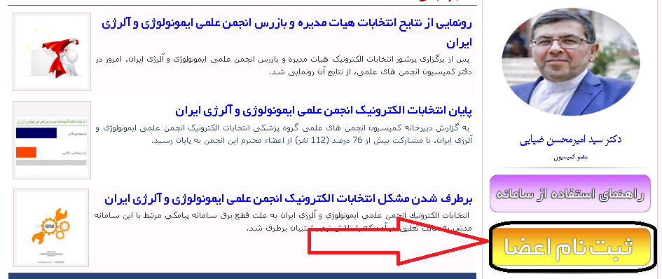 ابتدا وارد سایت سامانه به آدرس www.ima-net.ir شده و گزینه ثبت نام اعضا را کلیک می کنید. (طبق تصویر)